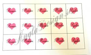Färdigt textark 25mm för 15st berlocker, familj rosa hjärtan, 1 ark