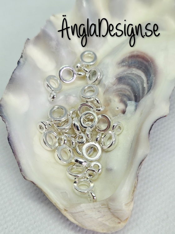 Nickel, bly och cadmiumfritt. Mått: 6,5mm 2mm tjock hål ca 3mm. Lilla ringen 4mm 1,5mm tjock, hål ca 1,7mm .